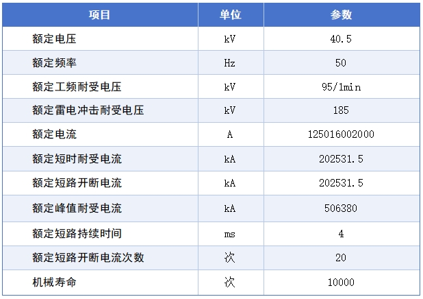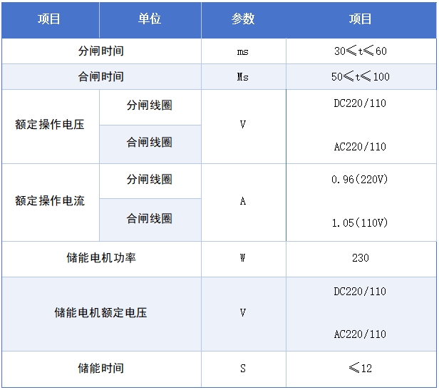真空断路器主要技术参数