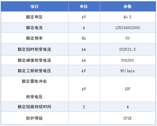 真空开关柜主要技术参数