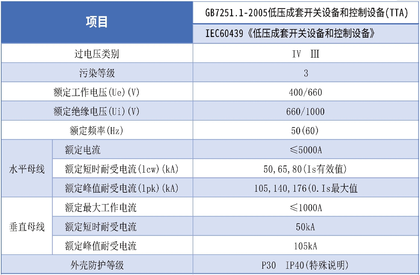 符合标准:GB7251.1《低压成套开关设备》,IEC60439《低压成套开关设备和控制设备》。
