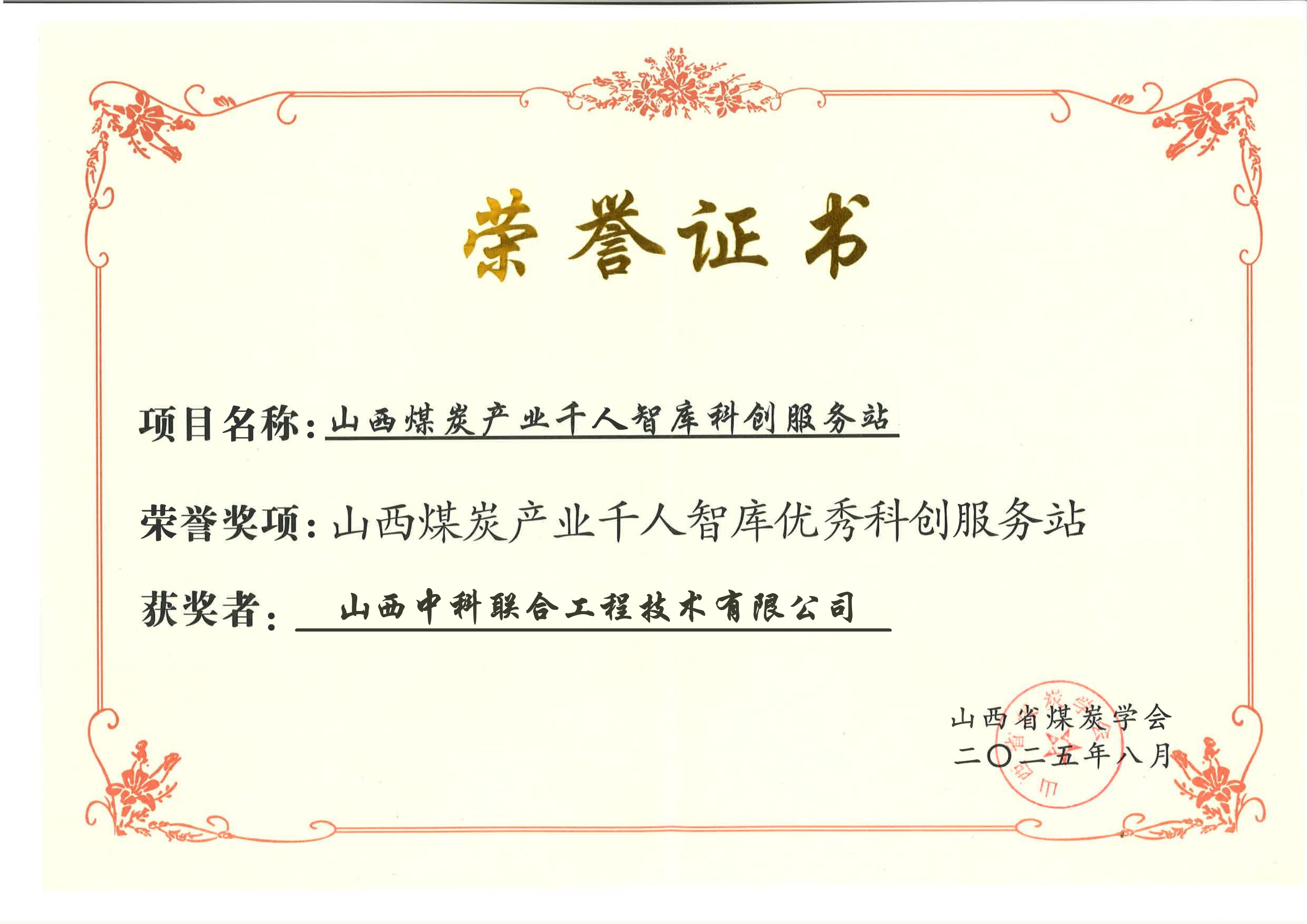 在大会开幕式及表彰环节,中科联合凭借在煤炭产业科技创新服务领域的卓越贡献,斩获多项殊荣,荣获 “山西煤炭产业千人智库优秀科创服务站” 称号。同时,中科联合的 “优秀科创服务站站长” 与 “优秀科创服务站联络员” 也受到表彰,这不仅是对个人工作的高度认可,更是对中科联合团队协作和创新精神的充分肯定 。