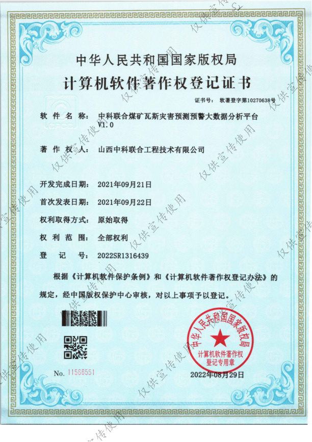 中科联合煤矿瓦斯灾害预测预警大数据分析平台 V1.0