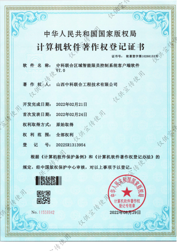 中科联合区域智能限员控制系统客户端软件 V1.0