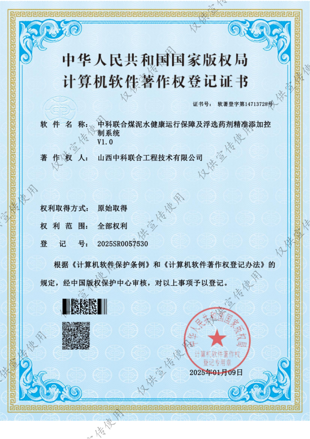 中科联合煤泥水健康运行保障及浮选药剂精准添加控制系统 V1.0